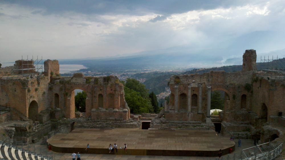 29 ← Previous Next → The sea is out to the left…. Mount Etna is barely visible in the far, right background