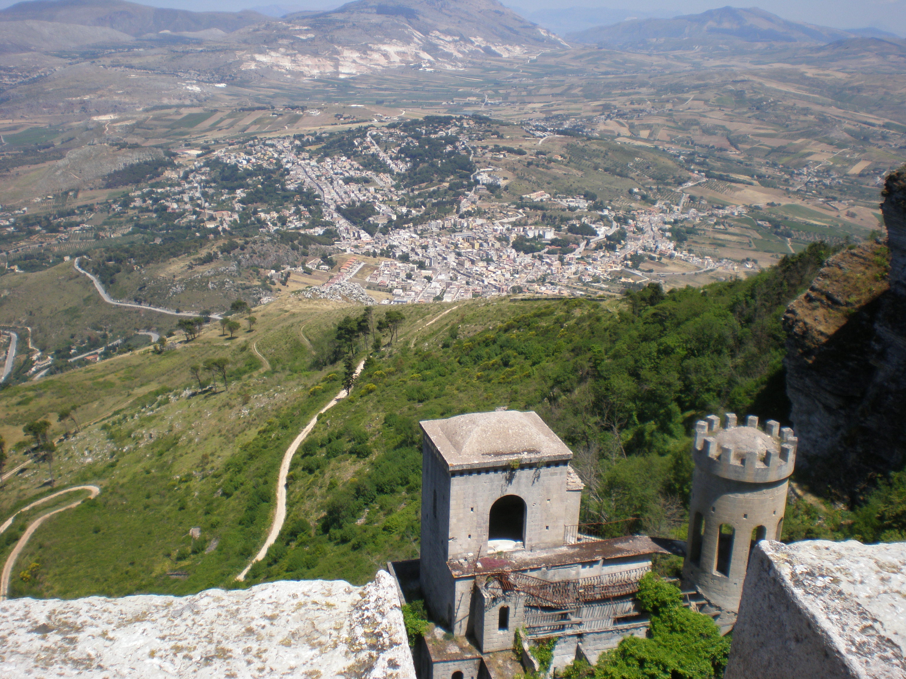 Looking down over part of the castle and the plains below.